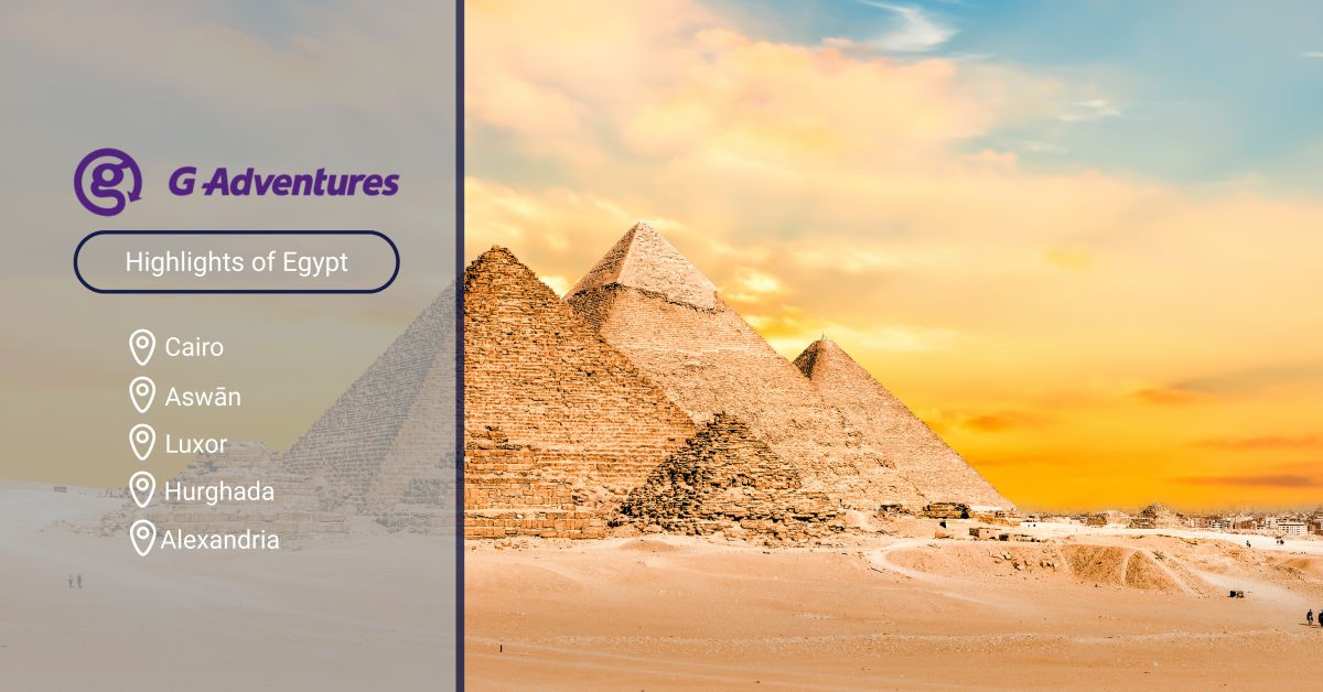 Don’t miss your chance to walk among the Great Pyramids, sail the Nile on a traditional felucca, snorkel the Red Sea, and explore ancient temples and hidden gems across Egypt — all on one unforgettable 14‑day adventure! Contact Uniglobe Travel to book your adventure today.