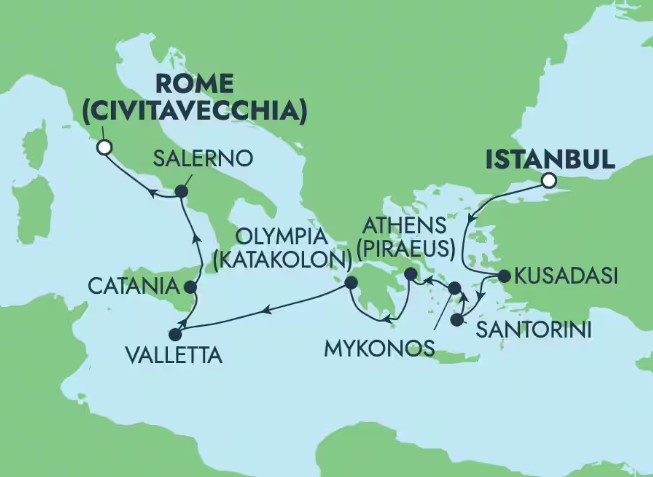 This quaint little seaside town on the Ionian Sea is the gateway to Ancient Olympia, where Greek mythology was born and the first Olympiad was held. You may still be able to hear the distant echoes of the ancient Greeks cheering as you tour the ruins of one of the most important and exciting sanctuaries of antiquity. Explore more of Katakolon on a Greek Isles cruise!