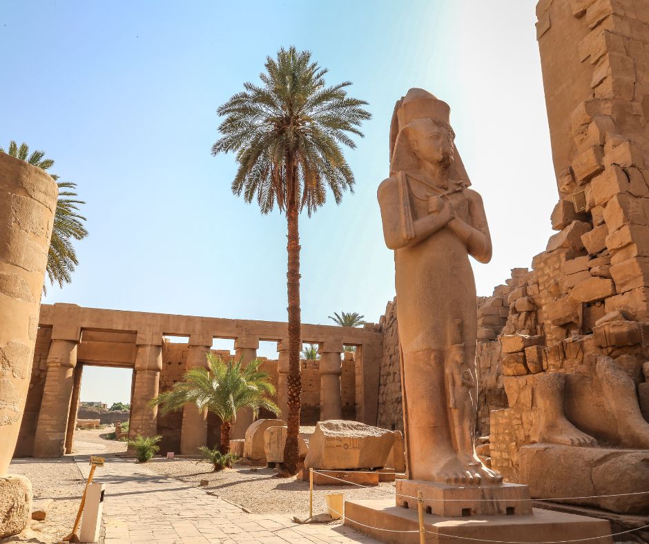 Rise before dawn*** for your 75-minute flight to Luxor. Upon arrival, visit the expansive Karnak Temple - a sprawling 4,000-year-old complex of towering pylons and intricate obelisks. Then, board your Nile River cruise ship and settle in for your four-night voyage. After lunch on board, enjoy a leisurely afternoon to explore the ship. This evening, take in golden hour views from the sundeck before gathering for your first dinner aboard.