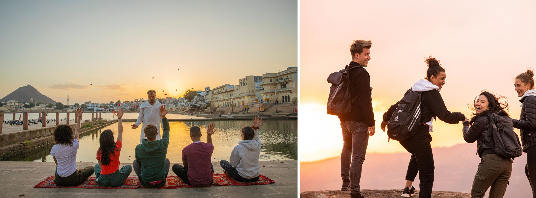 Today is jam packed with OMG worthy moments. Pushkar is one of the oldest and holiest cities in India and home to one of the only temples in the world dedicated to Brahma, the Hindu creator god. After a visit to this esteemed temple, you get the honor of choosing how the rest of your day unfolds. Connect with your spiritual side with a yoga class and a wellness and spirituality discussion or hike the famed pilgrimage path to Savitri Temple Hill and visit this picturesque hilltop. Come together in the evening again for sundowners with a show, to watch traditional Kalbeliya dancers alongside a local feast under the stars.