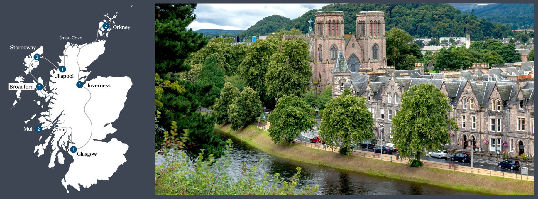 Embark on a captivating journey through Scotland’s rugged Highlands and remote islands, tracing the famed North Coast 500 and exploring some of the country’s most stunning coastal and island landscapes. From the cultural charm of Inverness and the archaeological wonders of Orkney to the dramatic cliffs of Skye and the sacred serenity of Iona, this tour offers an unforgettable blend of natural beauty, ancient history, and rich Gaelic heritage. With scenic ferry crossings, coastal drives, and immersive cultural experiences, each day brings new discoveries across Scotland’s wild and storied north.